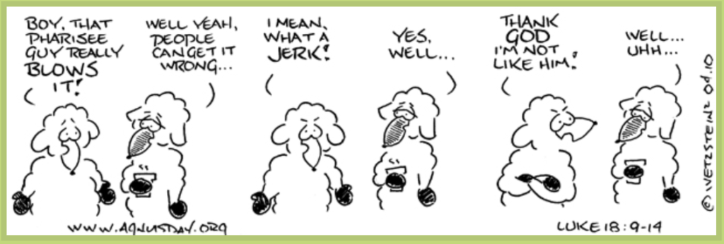 The Pharisee remains caught up in legalistic religion: for him, it is important to be righteous in God’s eyes and to be more observant than anyone else. The tax collector on the other hand, opens himself to the God of love that Jesus preaches. He has learned to accept the forgiveness and love of God in his life without boasting of anything or condemning anyone.