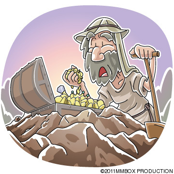 Jesus said to the crowds, ‘One day a man was digging in his field when his spade struck a box which was buried there. When he opened the box he was amazed to find it was full of treasure. He quickly buried the treasure again, went away, and sold his house and all that he owned. With the money he made, he bought the field from the farmer, and then ran back and dug up the treasure.